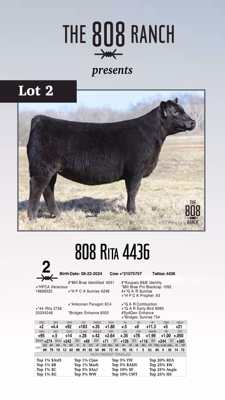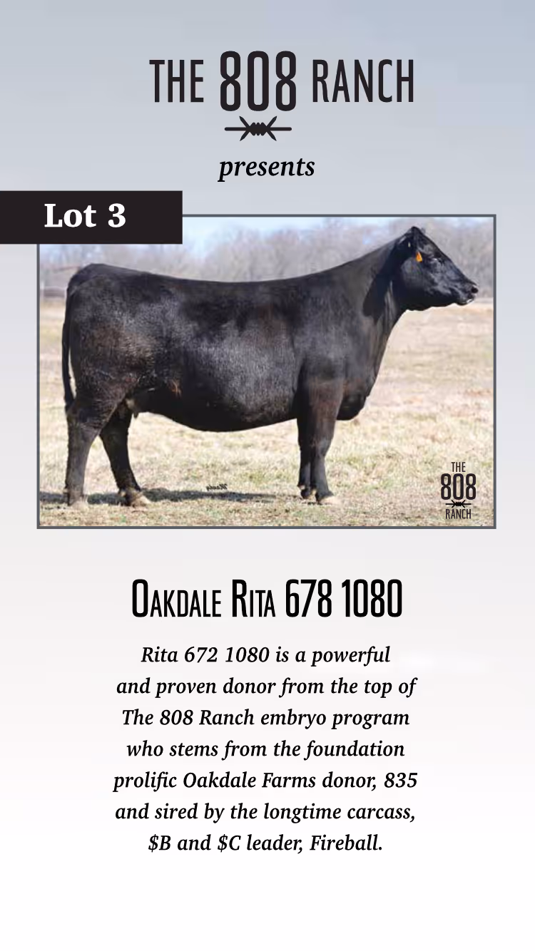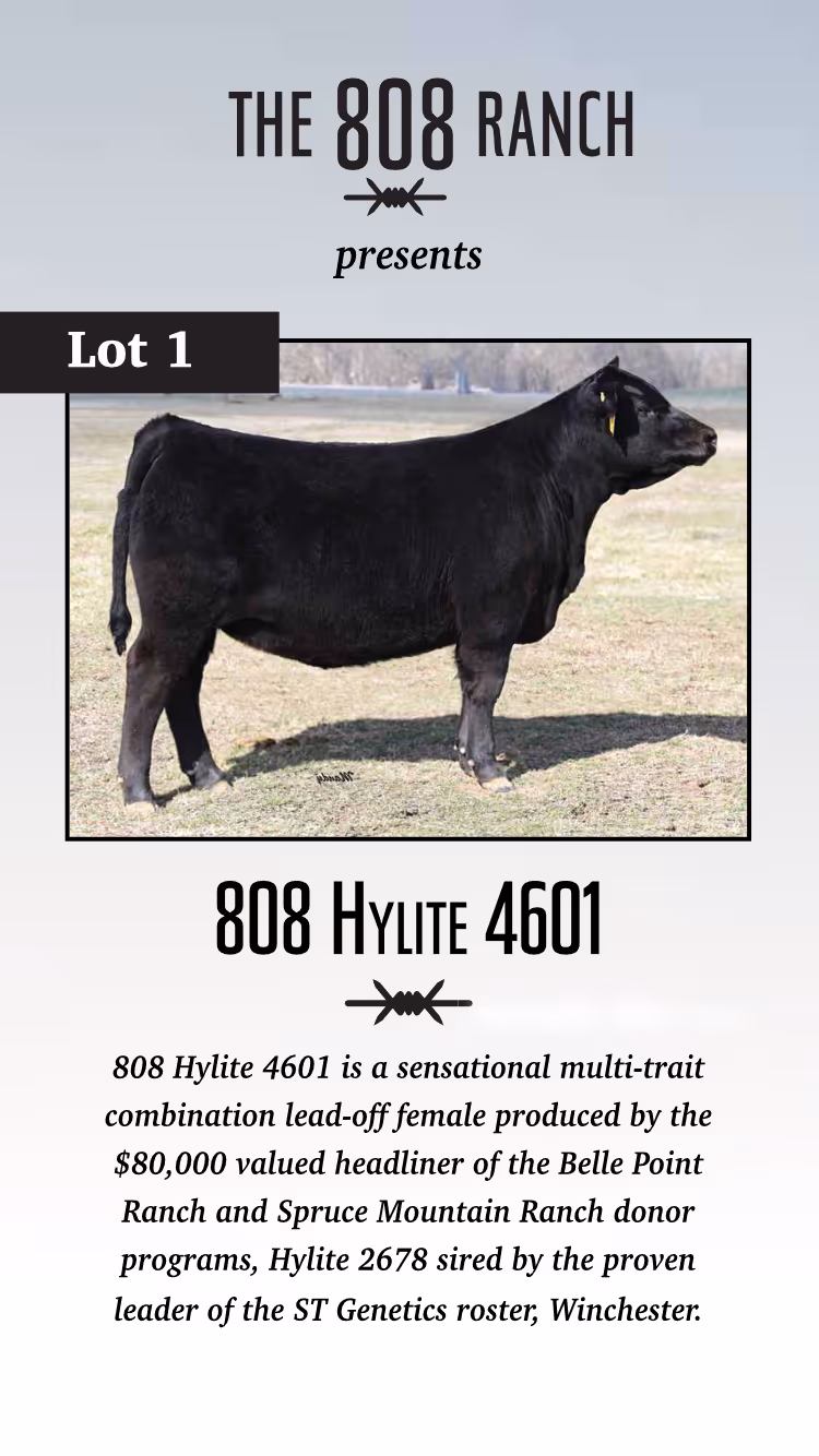 The 808 Ranch could not be more excited to present this, our first offering of superior Angus heifers and genetics. We have meticulously chosen to build our herd around the production of cattle that provide beef consumers with a wonderful eating experience.