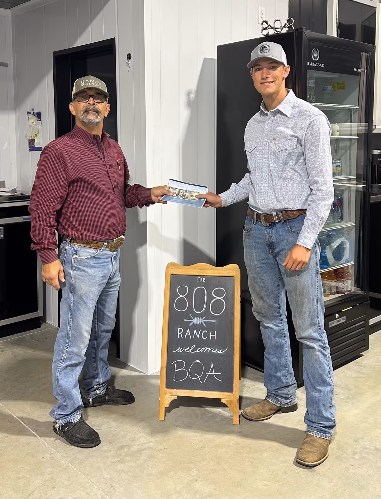 Jackson Blood is working on The 808 this summer. He is a 2024 graduate of McDonald County High School and will soon start his freshman year at College of the Ozarks. Jackson completed his Beef Quality Assurance (BQA) certification. The 808's cattle manager, Chace Jamison presented Jackson with a $100 for this important achievement on Wednesday June 26th, 2024.